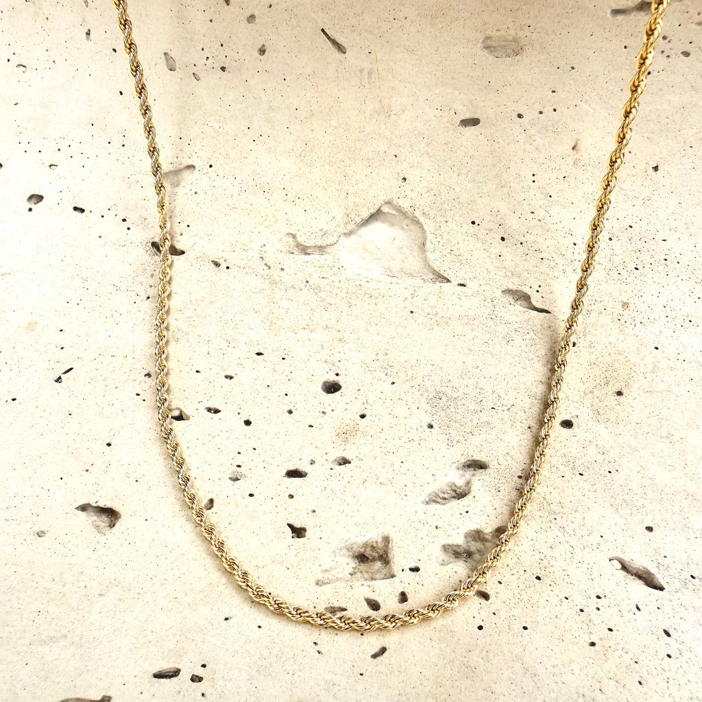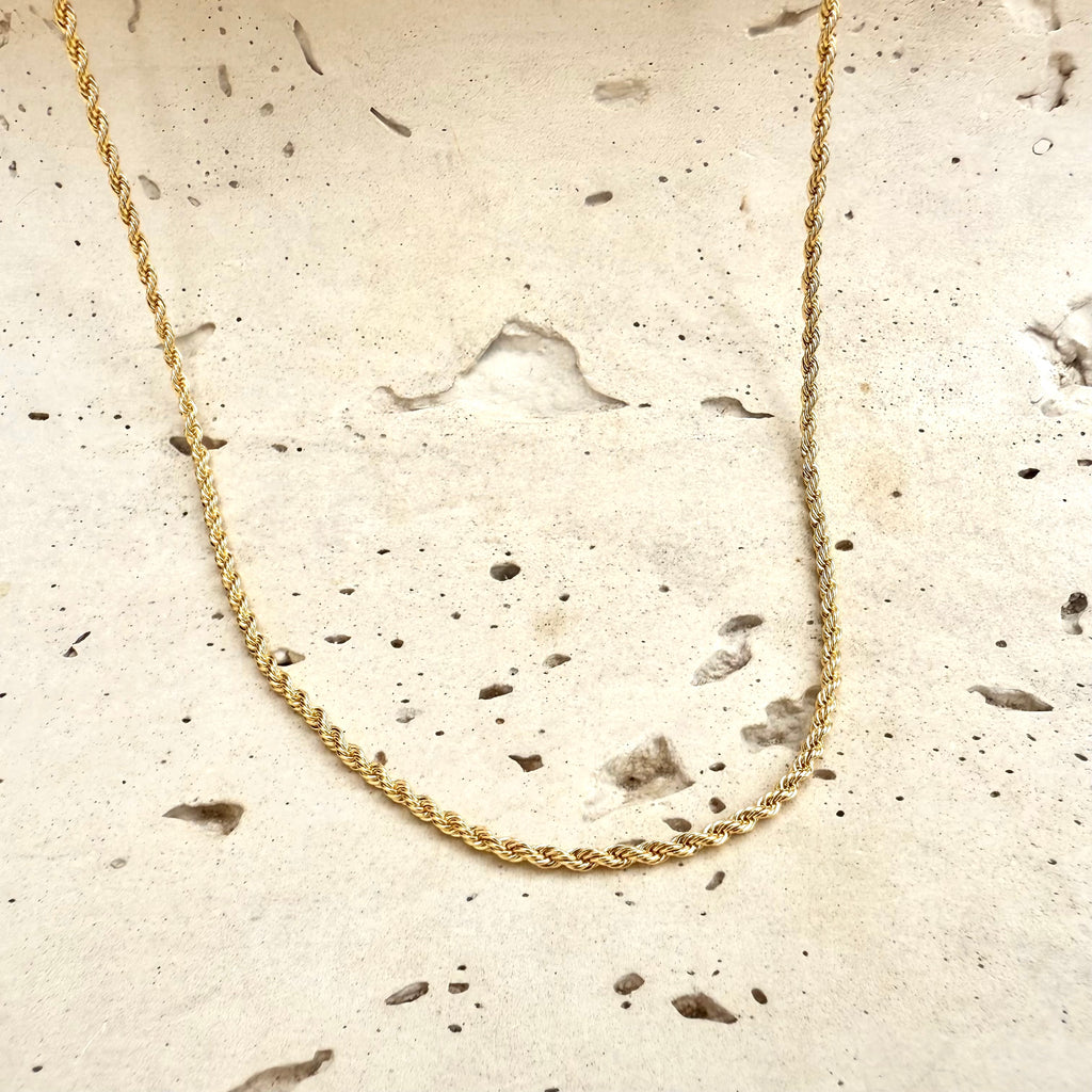 Esta cadena ofrece un diseño delgado y elegante gracias a su estructura entrelazada que proporciona un toque sofisticado y resistente, ideal para uso diario o en ocasiones especiales.