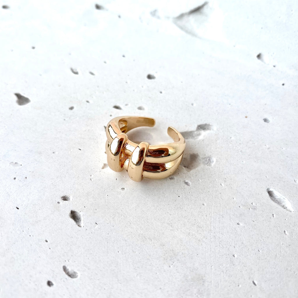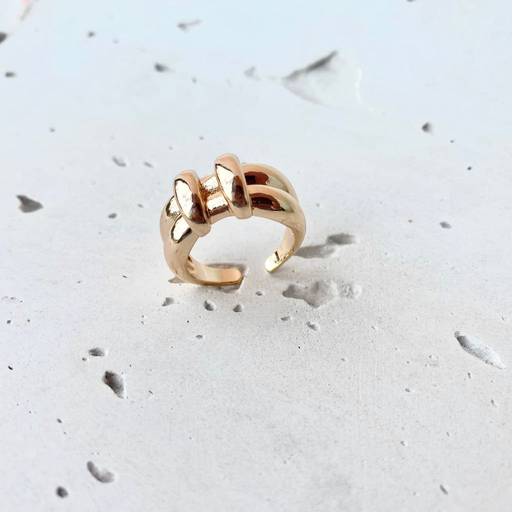 Anillo embutido con dos cuerpos unidos por mini fajones
