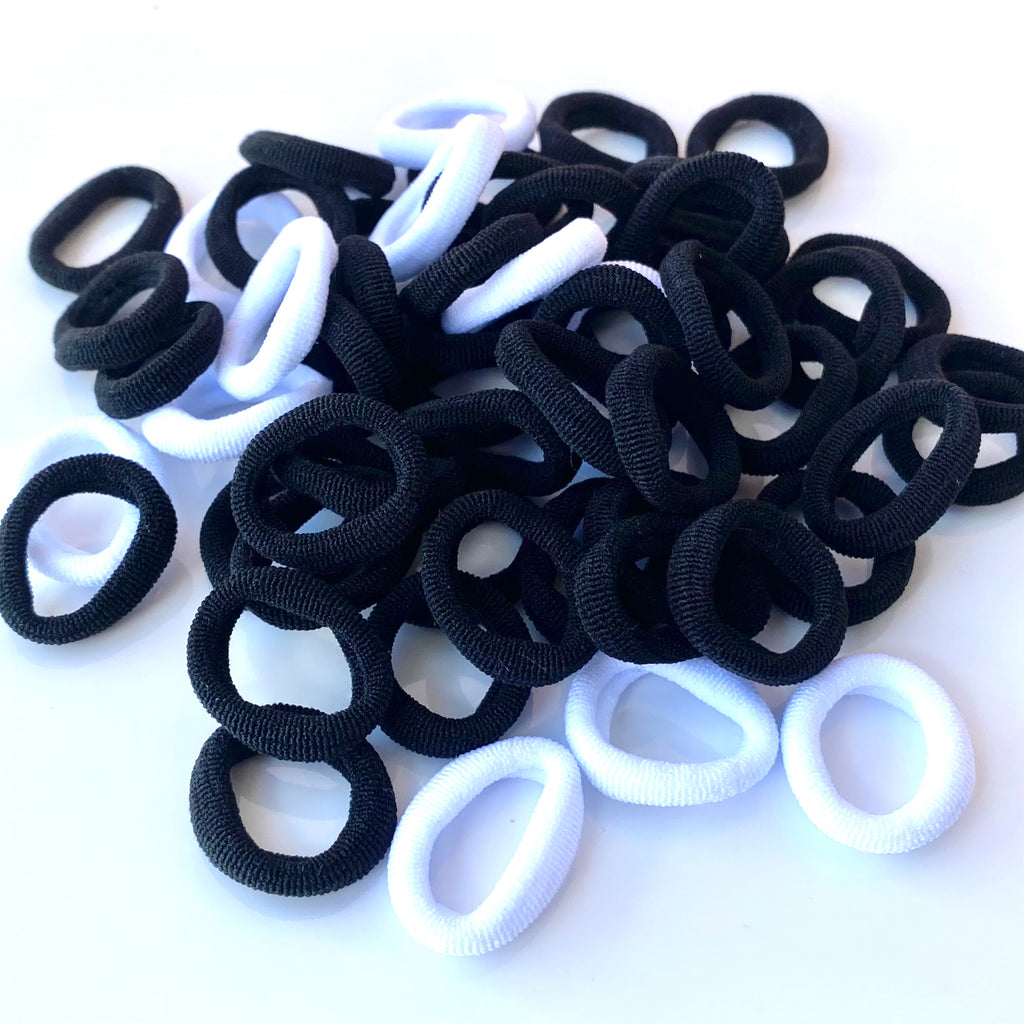 Set 50 Mini Cauchos Blanco Negro Sin Marca - Protección Cabello