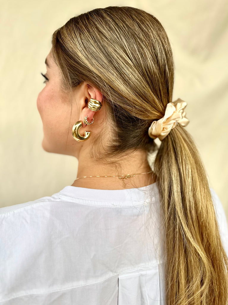 Un diseño de dos ondas puntiagudas que abraza elegantemente tu oreja desde la parte inferior, creando un look sofisticado y versátil. Combínalo con tus accesorios favoritos para personalizar tu estilo. Su ajuste flexible responde a una presión suave, garantizando comodidad y durabilidad sin riesgo de ruptura.