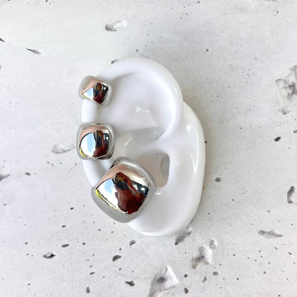 Luce la tendencia minimalista más viral. Earcuff Puffy voluminoso en Rodio de alta calidad y brillo duradero. Se lleva sin perforar. ¡Compra en línea hoy!