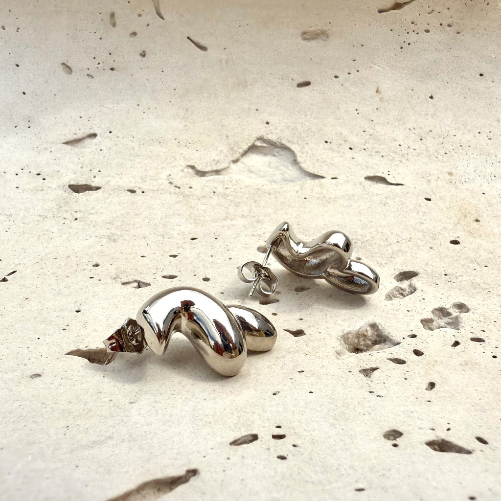 Topo con diseño asimétrico elaborado en una aleación de metales libres de niquel con baño en rodio y laca antialérgica que garantiza su resistencia al desgaste es cómodo y seguro para la piel. Es un diseño moderno y delicado que lo hace ideal para uso diario.